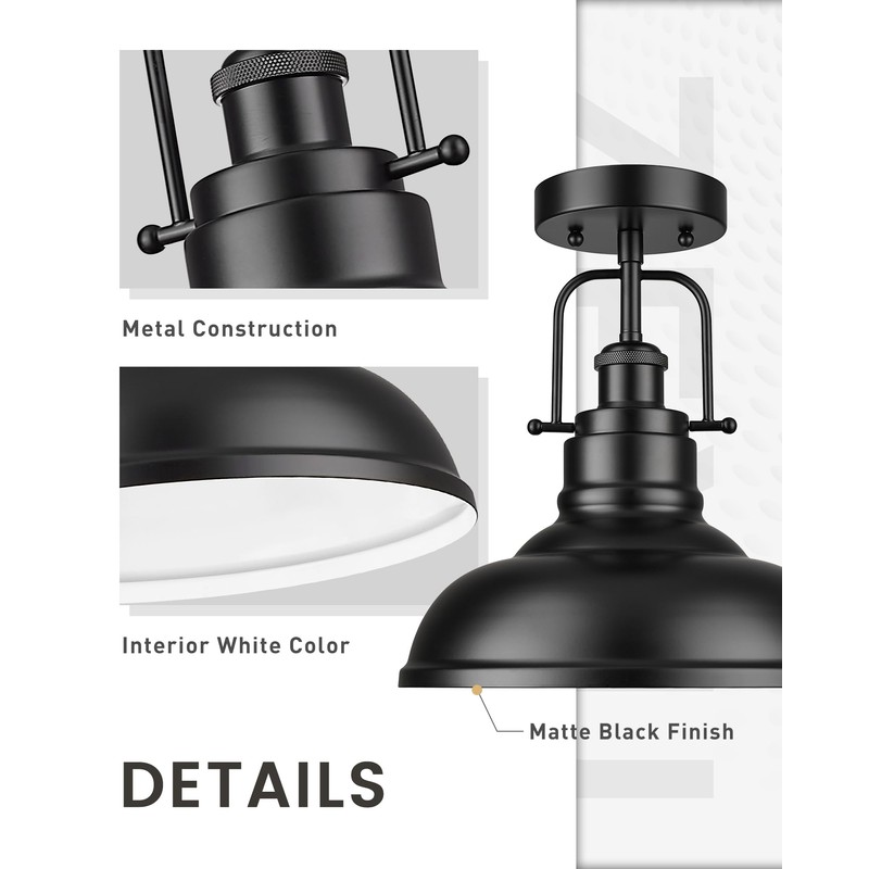 - MODERN DESIGN: This semi-flush mount ceiling lighting fixture features a modern design made of sturdy metal construction with a matte black finish on the exterior and a white interior, which can easily integrate into modern, industrial, or minimalist interiors.