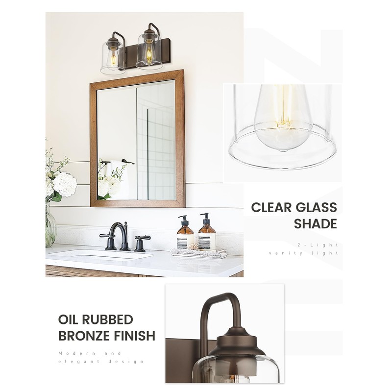 - MODERN & FARMHOUSE DESIGN: This farmhouse vanity light offers ample illumination for your home. The oil-rubbed bronze finish paired with clear glass creates shimmering reflections, adding elegance and warmth to your space. Its simple yet classic design makes it suitable for a variety of home decor styles.