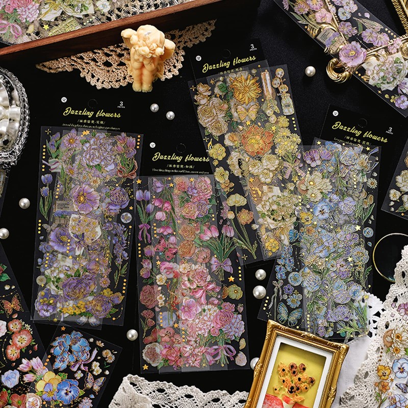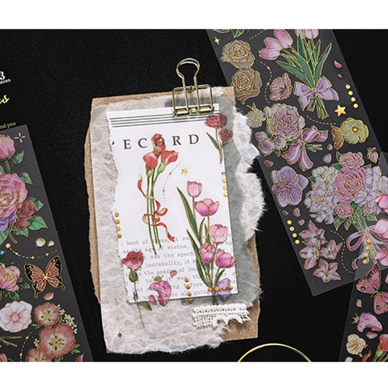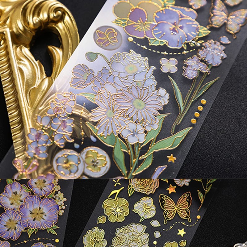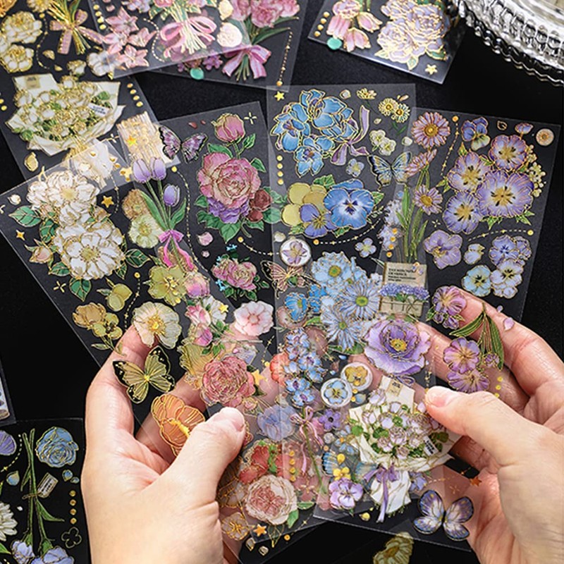 ZEZYXUFM Design Paper, 12 Pieces, 4 Themes, Flowers and Plants, Collage Material, Collage Notebook, Flake Seal Material, PET Hot Stamp Stickers, Cute, Collage, Stickers, Cute, Notebook, Diary,