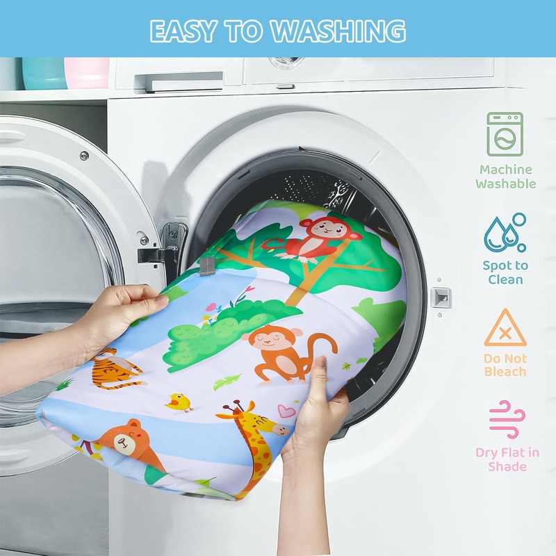 - Soft Safe and Easy to Clean : The baby gym play mat is made from high-quality polyester and cotton, thick, delicate, and smooth touch, safe and comfortable for baby skins. Soft and safe materials ensure a delightful exploration for babies while protecting them from potential impacts. small stains can be wiped directly, while the machine wash function handles larger areas, saving precious time and energy, providing a clean and hygienic play area.