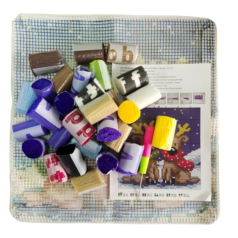 - COLOR Pre-printed Canvas --- Pre-printed Christmas pattern rug latch hook kits, we equipped various colors of yarn. Environmentally friendly acrylic fiber, neat cut, clear texture, bright colors, not easy to fade. Latch hook rug with Pre-printed grid, let you complete it better