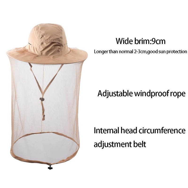 ZffXH Head Netting net hat Beekeeping Beekeeper Veil hat bee hat Sun Fishing Cap Khaki