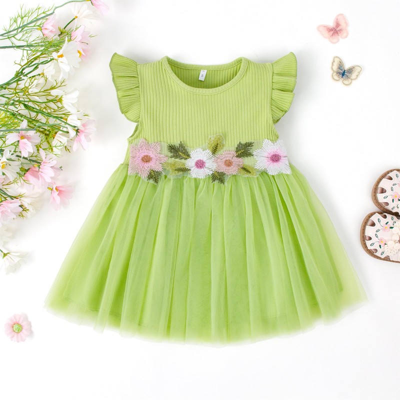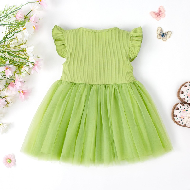 ZFZDRen 6M-3Y Baby Toddler Girl Ruffle Tutu Dress Kid Sleeveless Ribbed Tulle Dresses Knit Tops Flower Skirt Princess Outfits (Green,18-24 Months)
