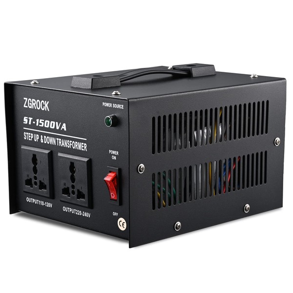 ZGROCK 1500W Voltage Converter Transformer Heavy Duty Step Up/Down- 110 / 220V- Circuit Breaker Protection