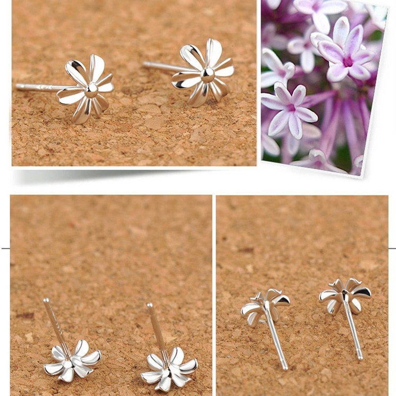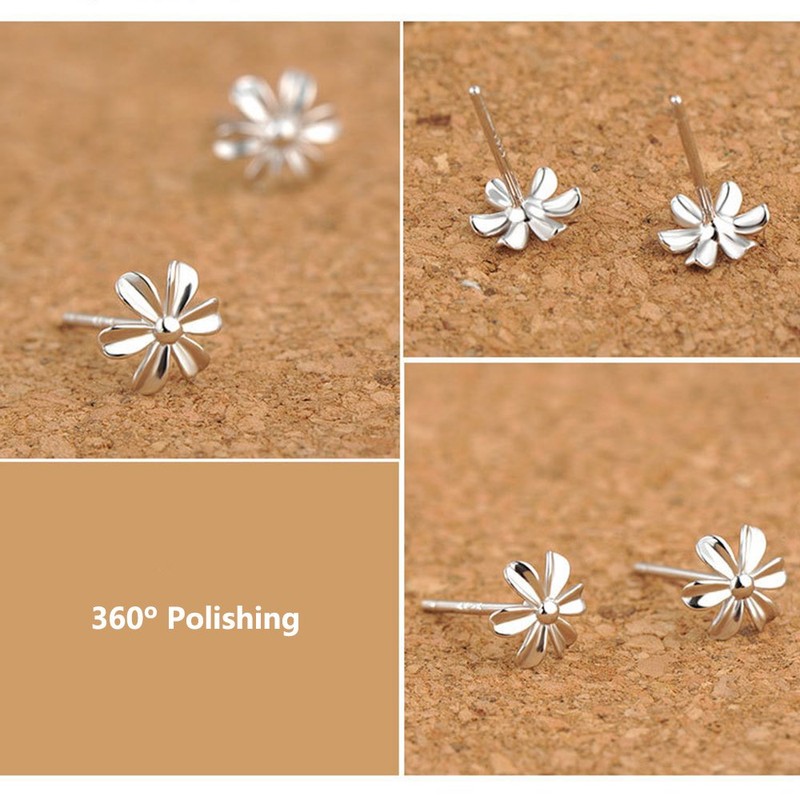 Zhang Trading Co., Ltd. 925 Sterling Silver Daisy Small Rose Flower Stud Earring (Silver)