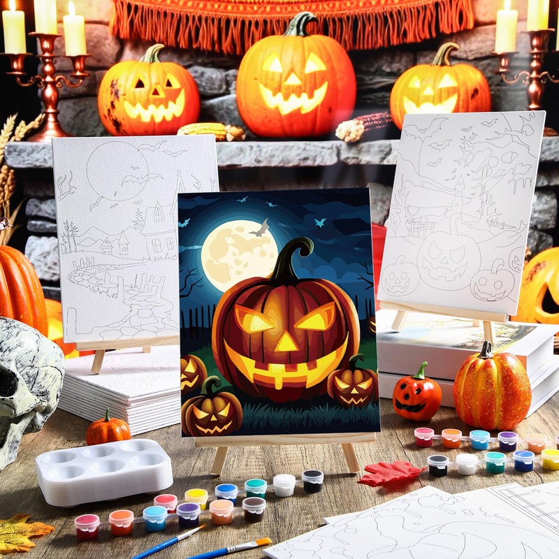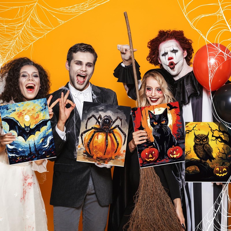 - Different Styles: our pre drawn canvas offer a variety of 20 different Halloween themed styles to choose from; This design can make sure there's a style that fits your taste and preference; Whether you're a beginner, a paint and sip going enthusiast, or an expert painter, our canvas painting will help you craft stunning artworks effortlessly. Get ready to dive into the world of colors and creativity with our paint party kits