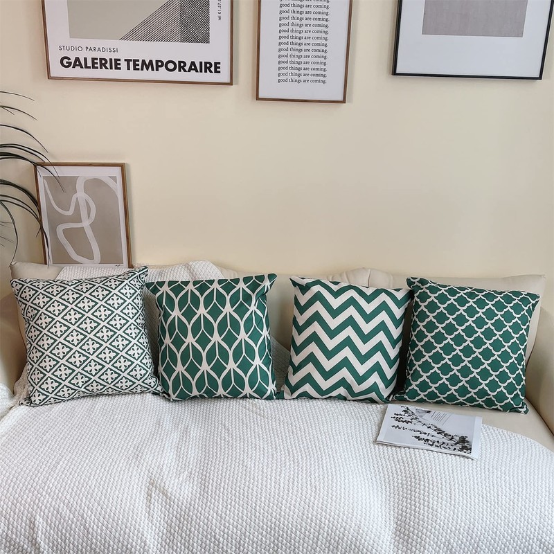 ZHAOMIMI Set of 4 Decorative Cushion Covers, Cotton Linen Cushion Cover, Double-Sided Print, Decorative Cushion, Sofa Cushion for Couch, Car, Bedroom, 45 x 45 cm (Green)