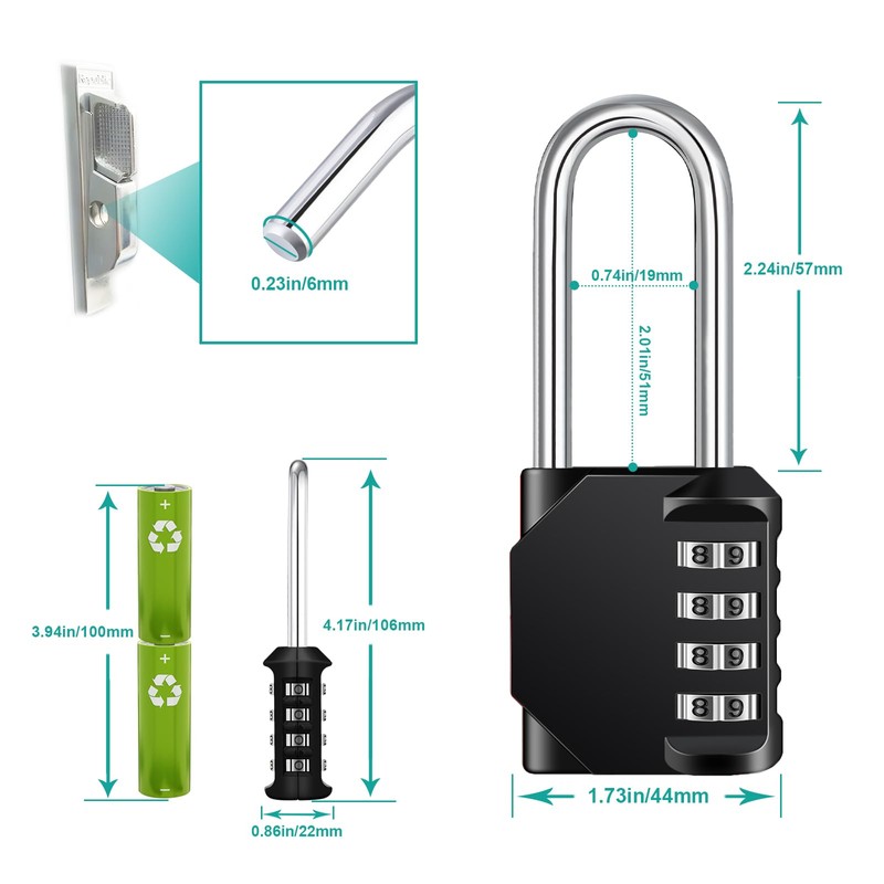 - ▶SET YOUR OWN COMBINATION: The 4 number padlocks with code takes 10 times longer to crack than a 3 digit lock. You can set any combination with 10, 000 unique choices that you know they are more reliable and safer.