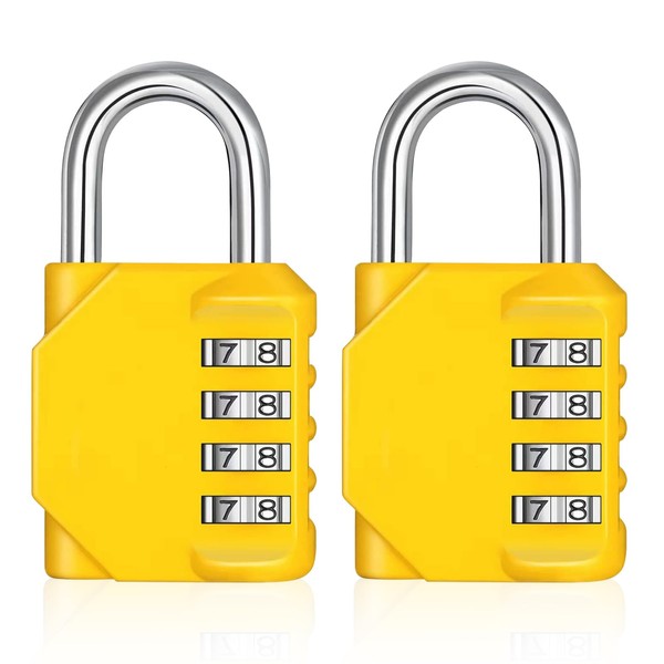 ZHEGE Combination Padlocks for Locker, Number Padlock, 4 Digit Combination Locks, Gym Locker Padlocks, School Locks, Resettable Code Locks Outdoor for Backyard Gate, Shed, Fence (Yellow, 2 Pack)