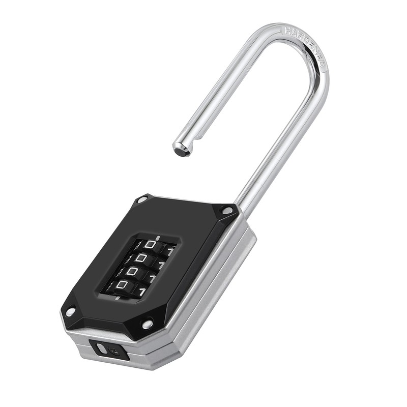 • Safe and solid: the 4-digit combination padlock offers 10,000 combinations, with all wheels firmly secured to make decryption impossible. In use, 12 mm of the shackle are securely locked in the lock body, much longer and safer than most numbers padlock. Long shackle on the market. The 7mm thick hardened steel shackle and high-strength zinc alloy housing provide high resistance to cutting and sawing.