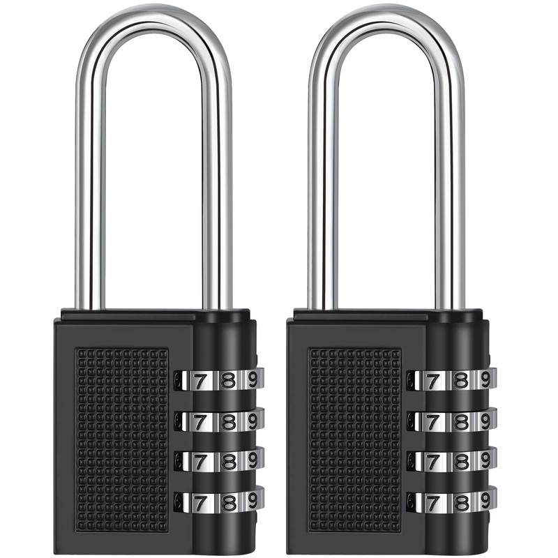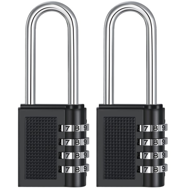 ZHEGE Padlock Long Shackle 66 mm, Lock with Combination Code, Weatherproof, 4 Digit Combination Lock Locker for Cupboard, Locker, Large Lock Outdoor Area for Tent, Basement, Outdoor (2 Pieces, Black)