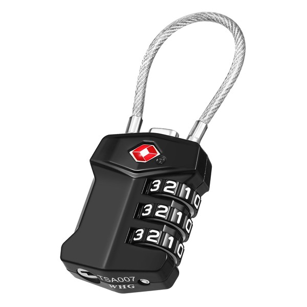 ZHEGE TSA Lock Padlock Small Dial Wire Suitcase Key 3 Digit Number for Travel Security Anti-Theft (Black)