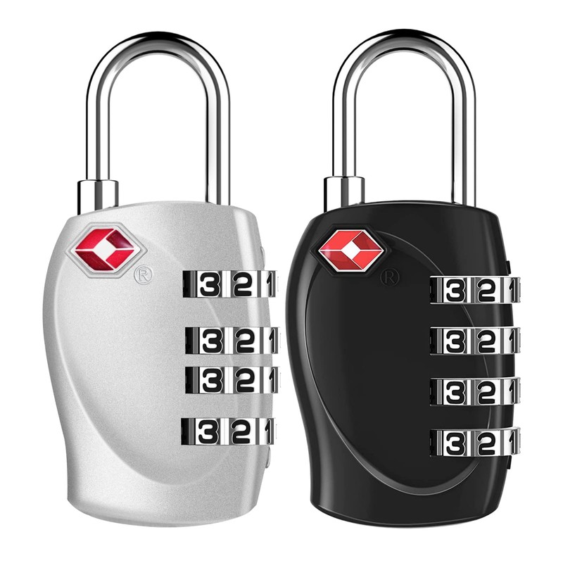 ZHEGE TSA Suitcase Lock, Combination Lock 4 Digit for Suitcase, Lock with Combination Code for Backpack, Bag, Small Padlock. (2 Pieces, Black and Silver)