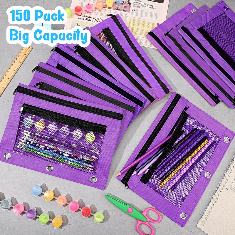 - Practical Clear Design: each 3 ring pencil pouch features a clear mesh window that facilitate the task of finding your stationery; Quickly find what you need and keep your stationery organized; Furnished with 3 rivet holes, aimed to strengthen the hole, avoiding tearing and ensuring an ideal fit into standard 3 ring binders