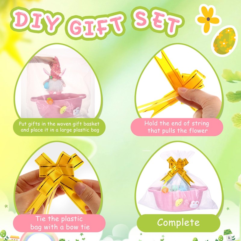 - Easter Gift Basket: the set includes 3 empty wrapping sets, 5 wool balls, and each Easter gift basket also comes with a ribbon, a transparent gift bag, cute carrots, rabbits, and chicken dolls, which can make exquisite gift baskets
