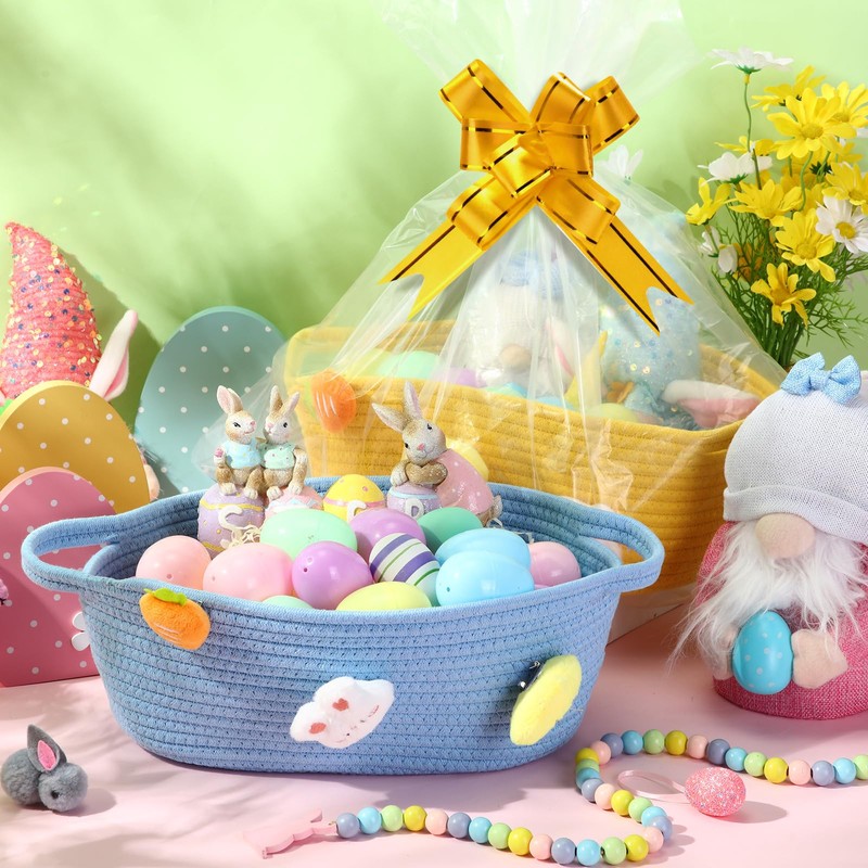 - Personalized Design: you can decorate the basket with the included carrot, bunny, chicken dolls and pom pom pins to create a specially Easter gift basket