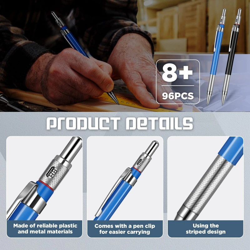 - Long Lasting : these woodworking pencils are mainly made of quality plastic and metal materials, sturdy but light, not easy to rust or break, providing you with a lengthy ; The grip part of the pen adopts stripe design, which is anti slip and easy to hold