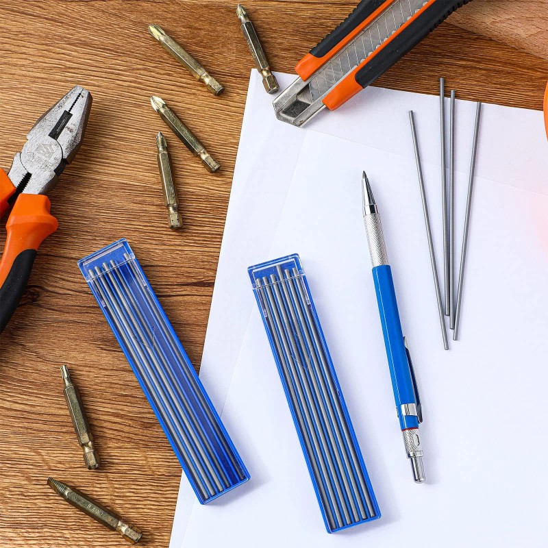 The length of carpentry pencil is about 15 cm/ 5.91 inches, suitable for 2B refills. The mechanical pencil refill is 2 mm and the length is about 12.5 cm/ 4.92 inches. It is easy to use and suitable for marking on the surface of a variety of materials.