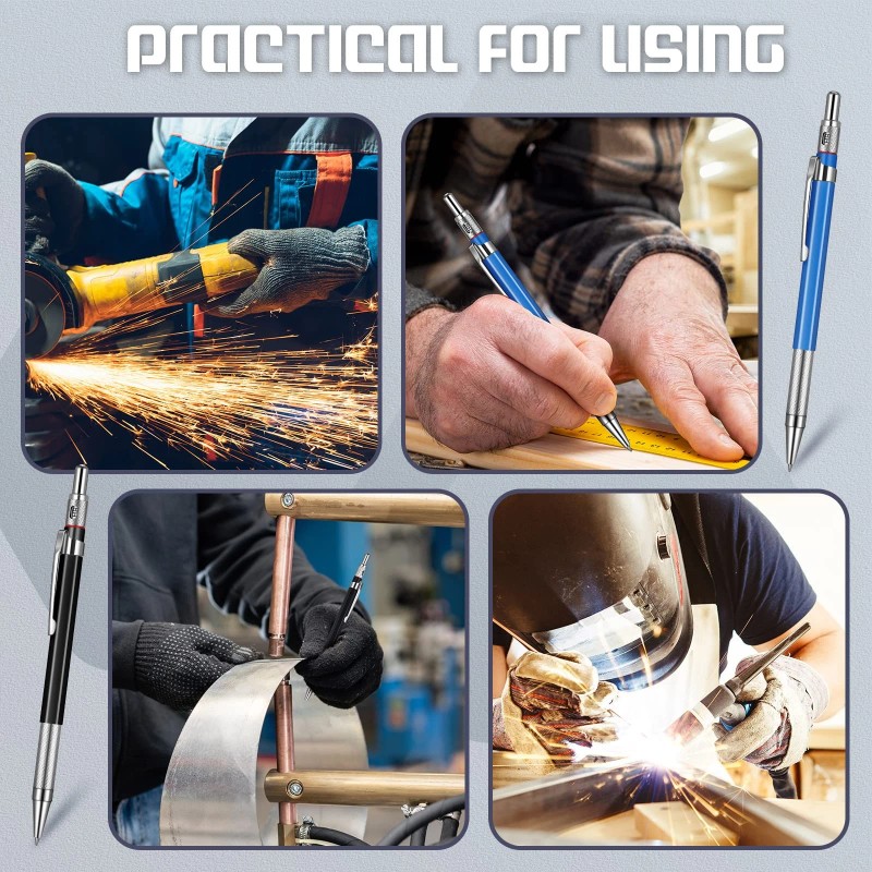 - Illuminate Metal Marker: compared to a soapstone pen, the 2 mm round refills of the metal mechanical pencil can lay out an illuminated marker that is not readily erased, and the reflecting marking may form a visible sign on metal and oily surfaces for welders and pipe fitters