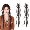 Zhejia 2本 エクステ ウィッグ ヘアエクステ 子供 編み込み エクステンション ツインテール ポニーテールリング ヘアアクセサリー ツインテール 付け毛 毛束 つけ毛 ヘアアクササリー アイロン可能 おしゃれ お団子 人気 装着 簡単 自然感 (茶色がかった黒)