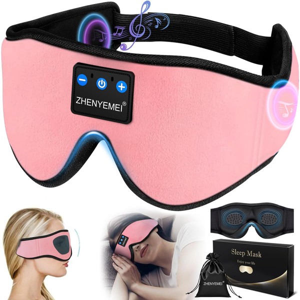 ZHENYEMEI Sleep Headphones Breathable Bluetooth 5.2 Headband. 3D Eye Mask for Sleeping (Pink)