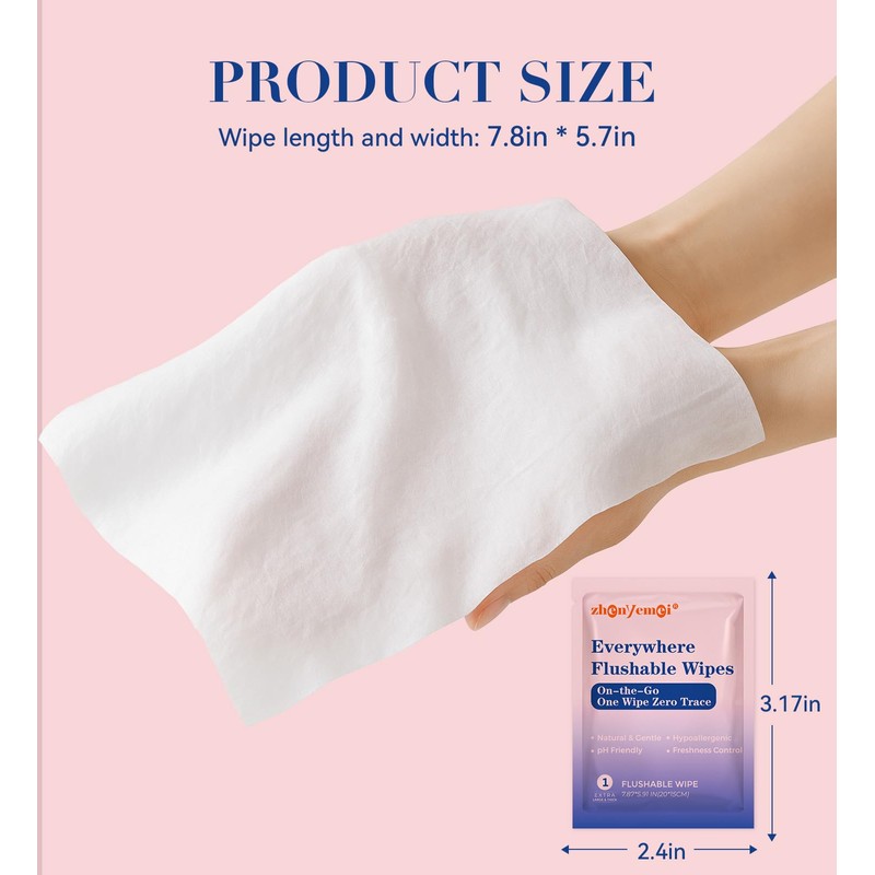 - 【HYPOALLERGENIC FORMULATION, EFFECTIVE CLEANSING GENTLELY】: ZHENYEMEI Flushable Wipes with natural ingredients are gentle on your sensitive skin while effectively removing dirt and odor. Fragrant/Alcohol-Free; pH balanced.