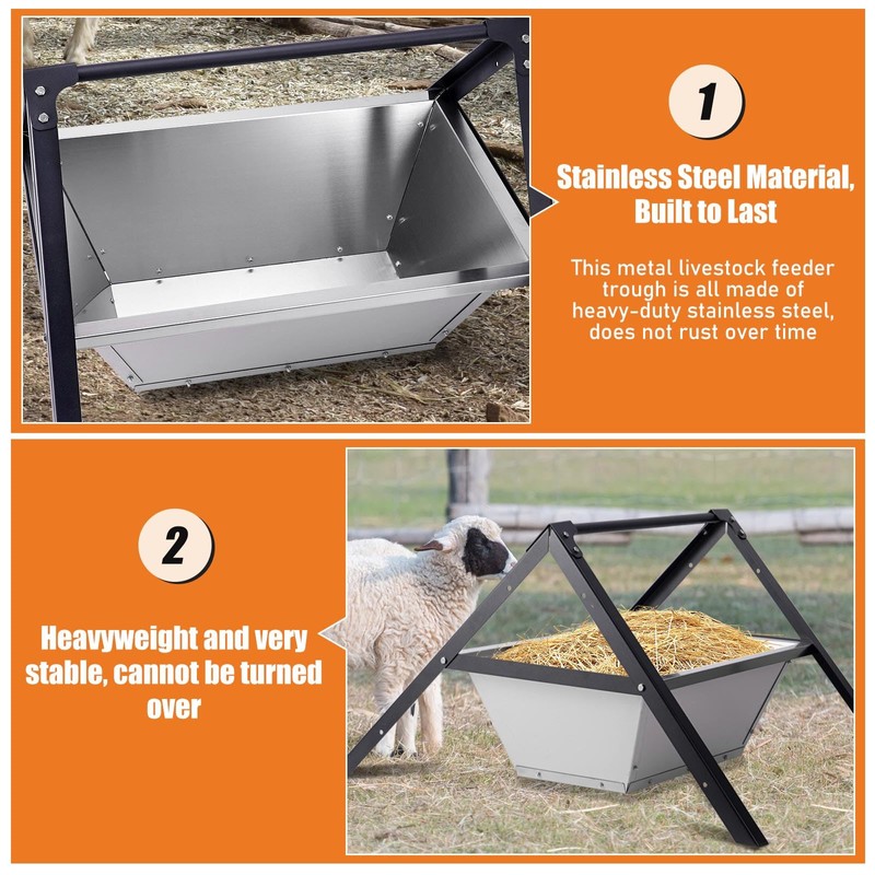 - Built to Last: This metal livestock feeder trough is all made of heavy-duty stainless steel, does not rust over time, suitable for outdoor use; heavyweight and very stable, cannot be turned over