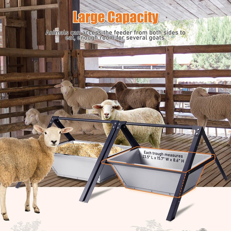 - Suitable Animals: This farm animal feed trough is perfect for goats, sheep, dogs, and other small and medium sized animals; animals can access the feeder from both sides to eat, enough room for several goats