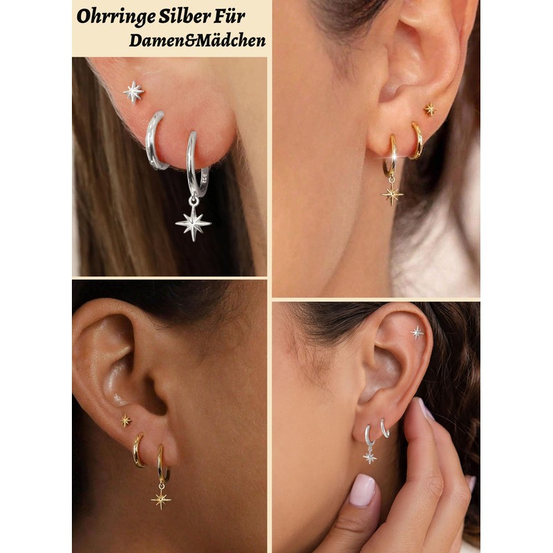 - Trendy gold women's earrings set: 3 pairs of delicate gold/silver 925 earrings in one set, consisting of stud earrings, huggie earrings and hanging charm hoops, allow you to create a unique and incomparable look with your other proven pieces. Super cute and can be worn on any day of the week, it is hard not to fall in love with this set of gold/silver stud hoop earrings