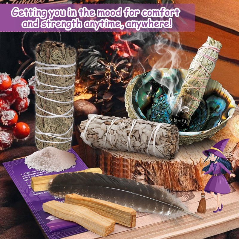 - Complete smoking mix: this complete smoking set includes a combination of sage and woods for your personal incense ritual. Contents: 1 x large tripod stand, 1 x abalone bowl, 2 x Palo Santo, 1 x cedar (10-11 cm), 2 x white sage (10-11 cm), 1 x long spring, 1 x white sand, 1 x instructions (English language not guaranteed)