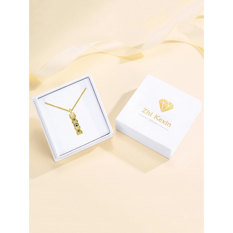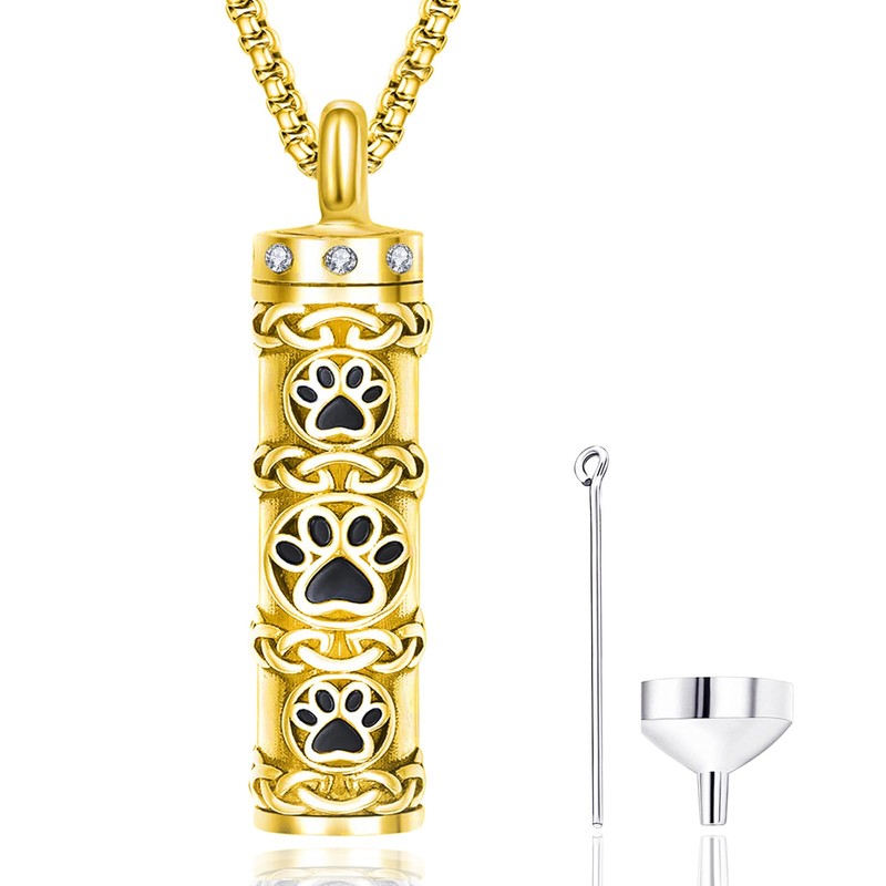 Zhi Kexin Vial Urn Necklace for Dog Ashes 925 Sterling Silver Gold Plated Cylinder Pet Paw Print Cremation Keepsake Pendant Celtic Knot Memorial Jewelry Gifts for Women Men, 1.18 Inches, Sterling