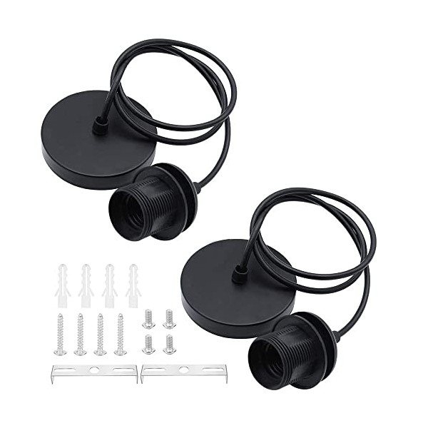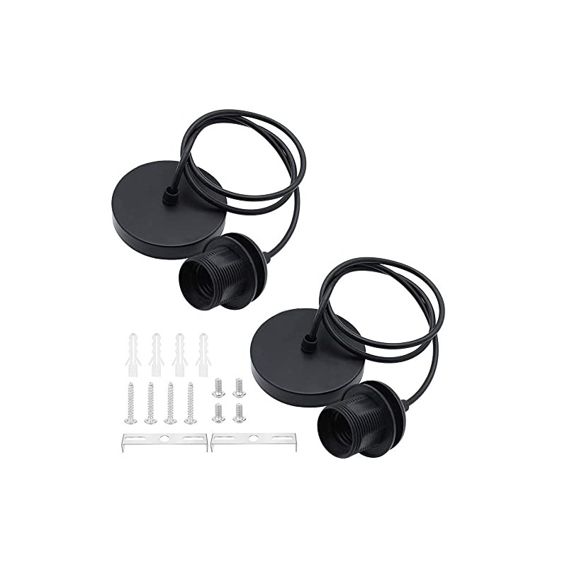 ZHIQIN 2 Pack E27 Pendant Light Fitting Ceiling Rose Pendant Modern Light Pendant Fitting Ceiling Fitting Set for Ceiling Pendant Light with 1M Cable,Black