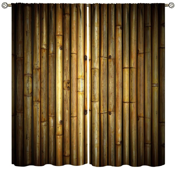 ZhiRain Bamboo Curtains Nature Japanese Asian Plant Brown Print Curtain with Rod Pocket for Bedroom Living Room Home Decor Drapes Window Treatments 2 Panels Set 42x45 Inch