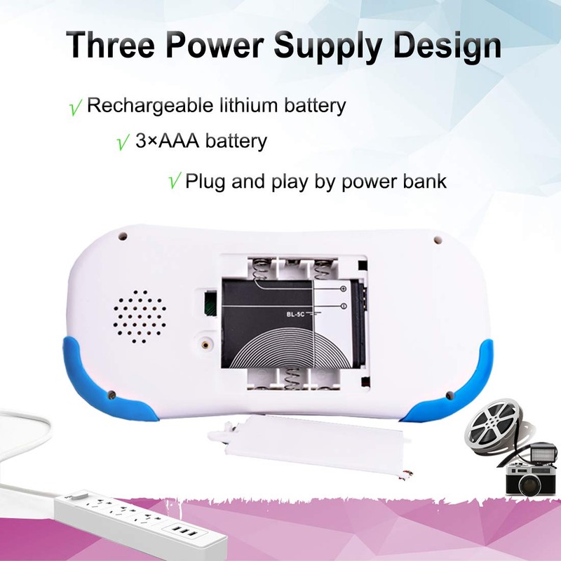 - ★ Three charging methods design! Built-in rechargeable lithium battery for power supply. Once you open the package, kids will be ready to play games with fun. You can also connect it with a USB cable to your power bank and play while charging. The third is using AAA batteries. Super gentle design!