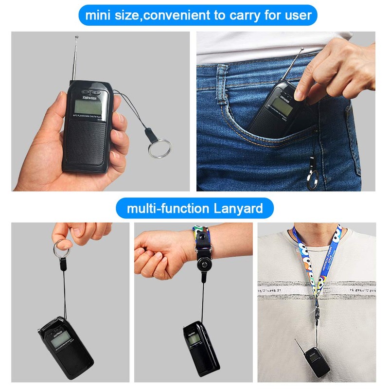 The mp3 player with FM radio is equipped with a multi-function lanyard that can be hung around the neck and hung on the hand.