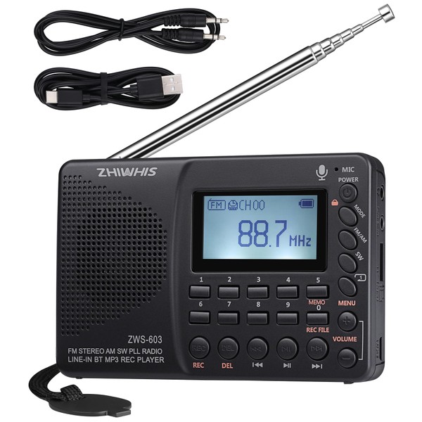 ZHIWHIS ZWS-603 Disaster Prevention Radio, FM/AM/SW/Wide FM Compatible, Bluetooth/Timer/Key Lock/Preset Function