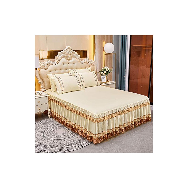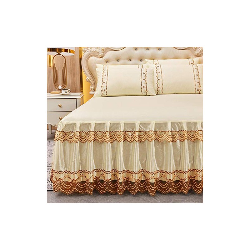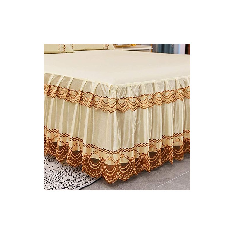 - The top sheet is lightweight for all seasons, the double-layer lace ruffles cover three sides of the bed, the left side, the right side and the foot. It tastefully conceals under-bed storage, mattress and metal bed bases, complete your bedroom with a look that feels fresh and cozy. The back corner elastic bands keep the bedspread on the bed without sliding