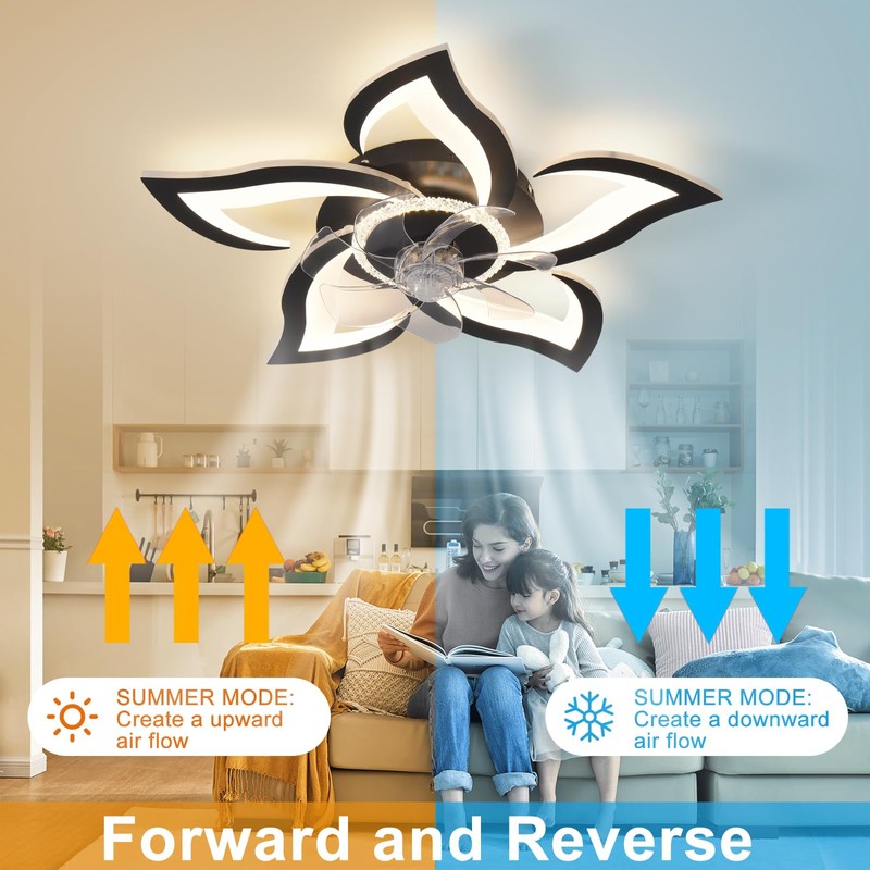 - 【Forward and Reverse Ceiling Fan】—The Ceiling Fan with Light Remote Control has 6 reversible and adjustable speeds, and has the function of forward and reverse rotation. It can drive the indoor air, make the indoor air more circulating, and circulate the air flow throughout the season.