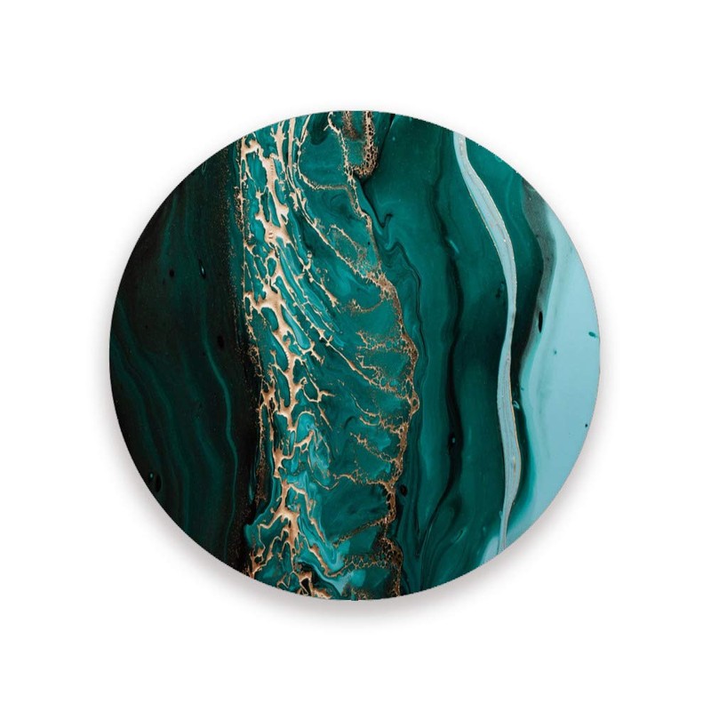 ZHONGJI Coasters for Drinks Absorbent Round Fluid Art Dark Green Waves Ceramic Stone Anti Scratch Cork Housewarming Gifts Wedding Living Room Office Decoration Bar 3.9Inch Set of 1