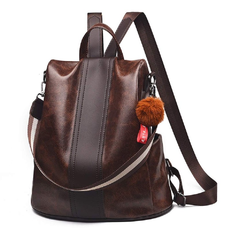 zhongningyifeng Women's Backpack, Zipper Back, Leather, Anti-theft Waterproof, Backpack, Shoulder Bag, 2-Way Girls, Popular, Coffee