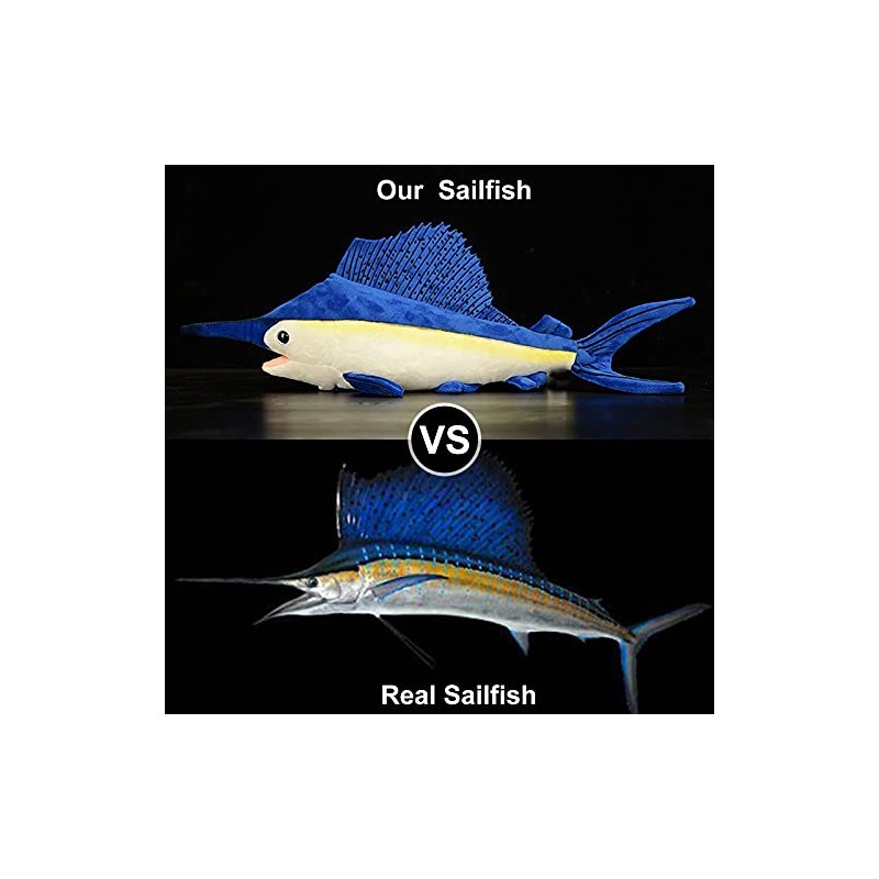 �HIGH QUALITY SIMULATION SAILFISH STUFFED PLUSH TOY!Very Realistic Animal Toys!Handmade Cute Depth Ocean Lstiophorus Platypterus!Lifelike Real Life Plush Toy:Imitating real animals,its the dark blue blue fur is smooth and soft , The white stripe bottom is transparent, blue and black striped large fish scale design, the overall shape design is realistic, and the face design is unique, very realistic. It can also be given as a good collection and gift.Our Sailfish plush is very soft, realistic, cute and durable!Quality Handmade crafts!Made of high-quality fabrics and plenty of fillers, reinforced stitching meticulous.The quilt cover of the toy is made of high-quality plush fabric. The inner thick PP cotton is filled.Stuffed plush turtles can be hugged and hand-washed.GREAT GIFT IDEA:Expand your child's interest in research and creature exploration. Our animal plush provides lovely companionship for any child! It is the best marine animal toy collection option! Wearing a super soft velvety coat, you will not be able to stop hugging it!Perfect Gift:These are thoughtful gifts for children, parents and family members of all ages. Best choice for birthdays, Valentine's Day gifts, Christmas, Thanksgiving or any other anniversary.Our plush collection can be combined with animals of all sorts to create the ultimate collection!Start now, scroll to the top, add a shopping cart,Add new hug friends for your children and family!Package Includes: 1 x Simulation Sailfish Plush Toy