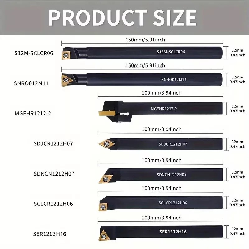 21PCS 1/2"/12mm Shank Indexable Carbide Lathe Turning Insert Tool Holder Bit Set Turning Insert CCMT21.51 DCMT 16ER 11IR MGMN200-M