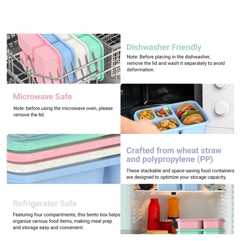 - [Microwave, freezer and dishwasher safe] These bento boxes are microwave safe for reheating, freezer safe for storage and dishwasher safe for easy cleanup