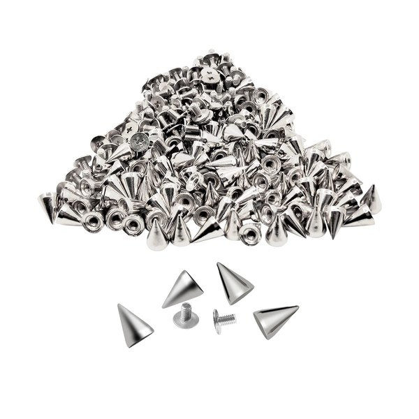 zhuohai 100 Pairs Cone Spikes Screwback Studs, Cone Silver Studs and Spikes Punk, DIY Leather Craft Cool Rivets Punk(7X10mm)
