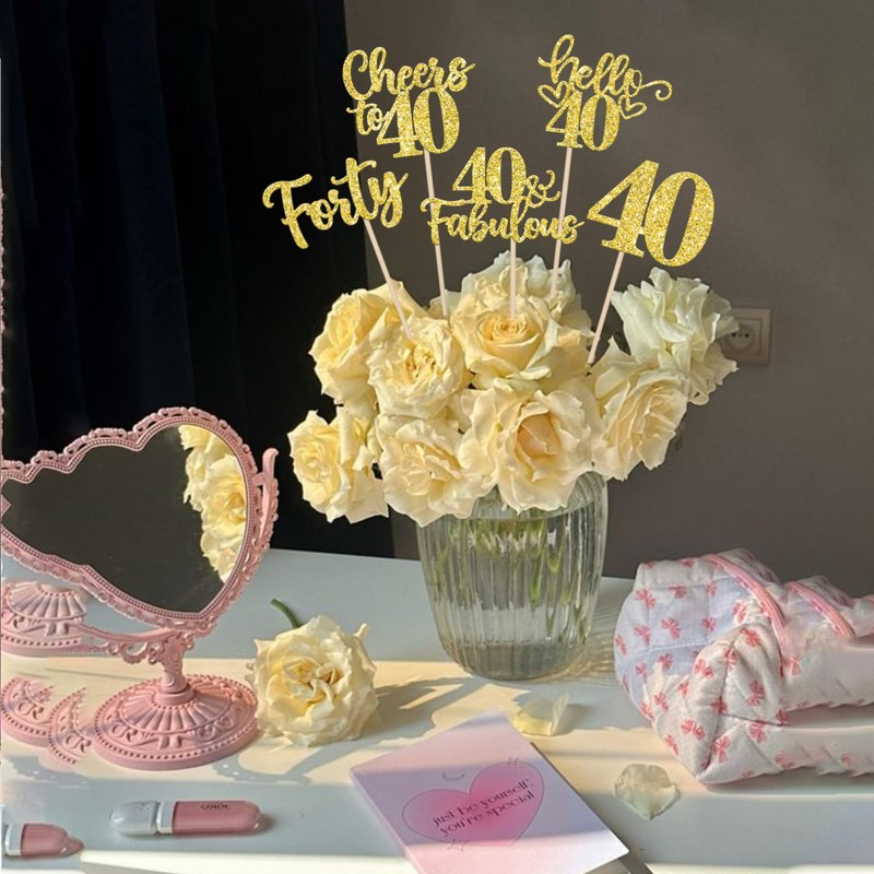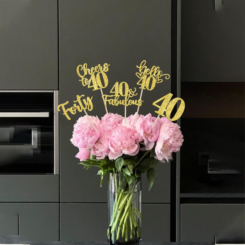 - Wide Usages ! These 40th birthday table centerpiece sticks are perfect for happy 40th birthday theme party, cheers to 40 years theme party,hello 40 fabulous theme party,40th anniversary theme party centerpieces floral decorations,they can make the table or flower more attractive and bring the fun to your party.