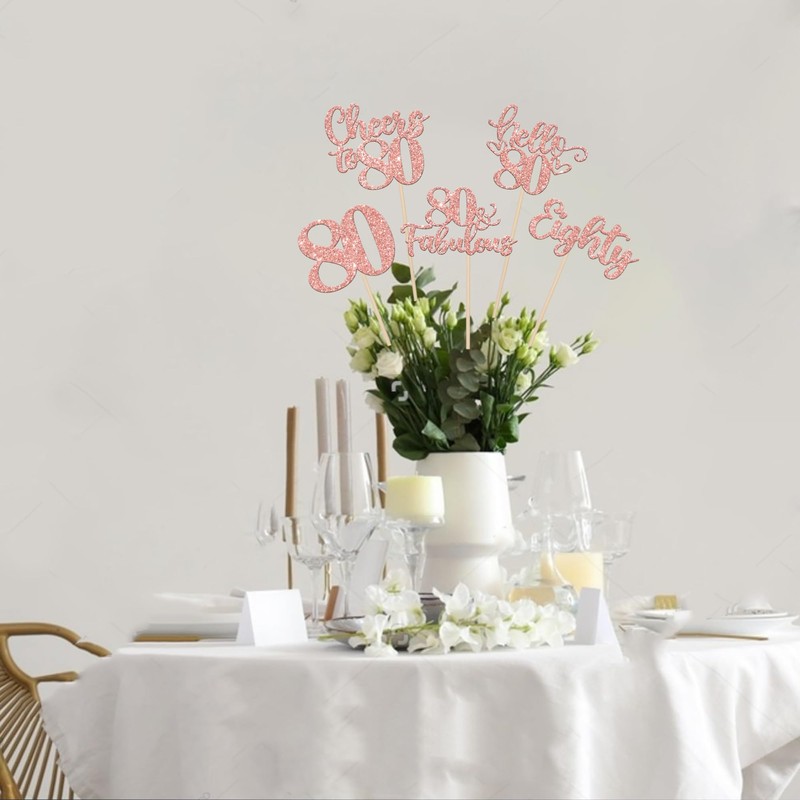 - Wide Usages ! These 80th birthday table centerpiece sticks are perfect for happy 80th birthday theme party, cheers to 80 years theme party,hello 80 fabulous theme party,80th anniversary theme party centerpieces floral decorations,they can make the table or flower more attractive and bring the fun to your party.