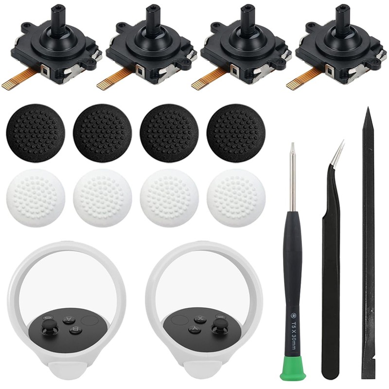 - Package Includes: 4 x VR replacement joystick, 8 x Thumb Stick Cap, 1 x T5 Scewdriver, 1 x Tweezers, 1 x Crowbar