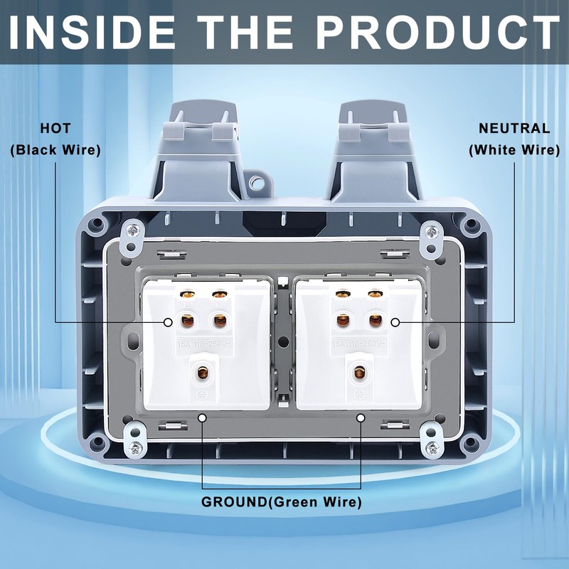 - 【P66 Waterproof Rating】featuring a Silicone Rubber Gasket and a Fully Enclosed Cover, This Socket Is Ip66 Rated, Ensuring Reliable Protection Against Rain and Dust in All Weather Conditions, Perfect for Outdoor Use