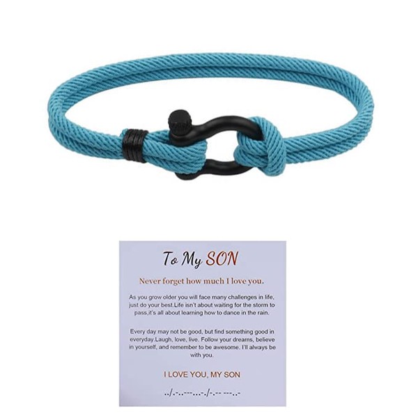 ZhxshwHdd To My Son Bracelet From Mom - Stainless Steel Braided 'I Will Always Be With You' Gift For Son (Sky Blue)