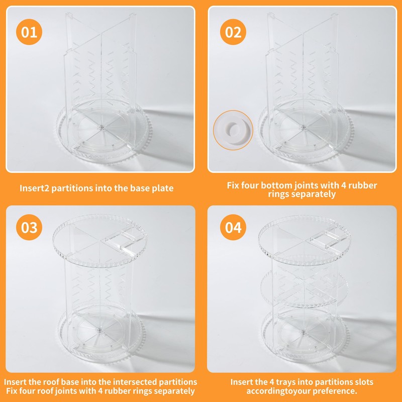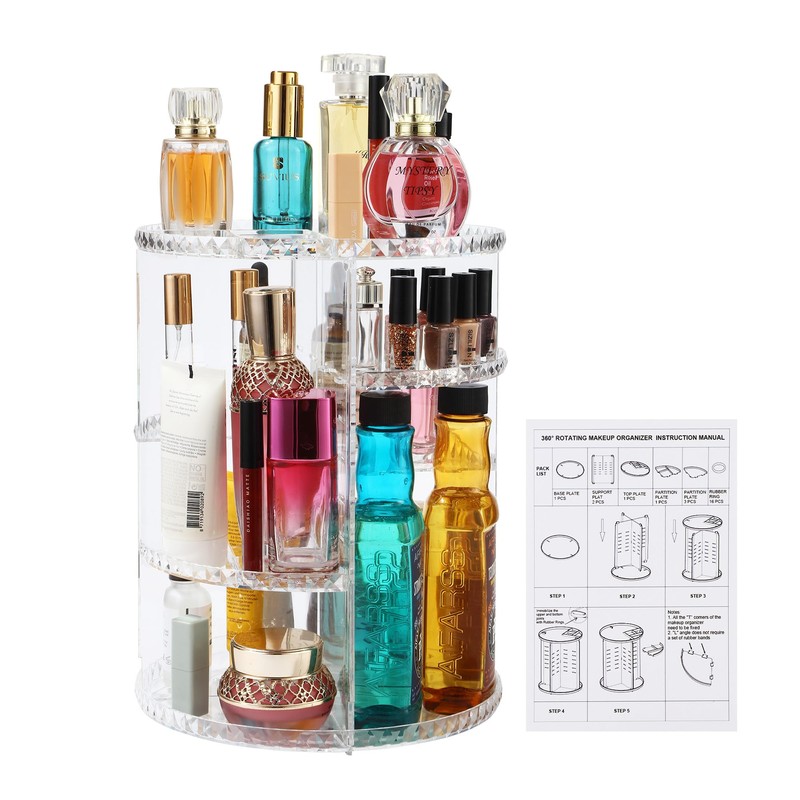 - Removable design: our rotating make-up organiser is easy to assemble and disassemble; it comes with an instruction manual and installation parts to facilitate your installation. It can be disassembled and stored when not in use, so it does not take up space. With the adjustable levels, you can adjust the height of the shelves to store different types of cosmetics and items of different shapes